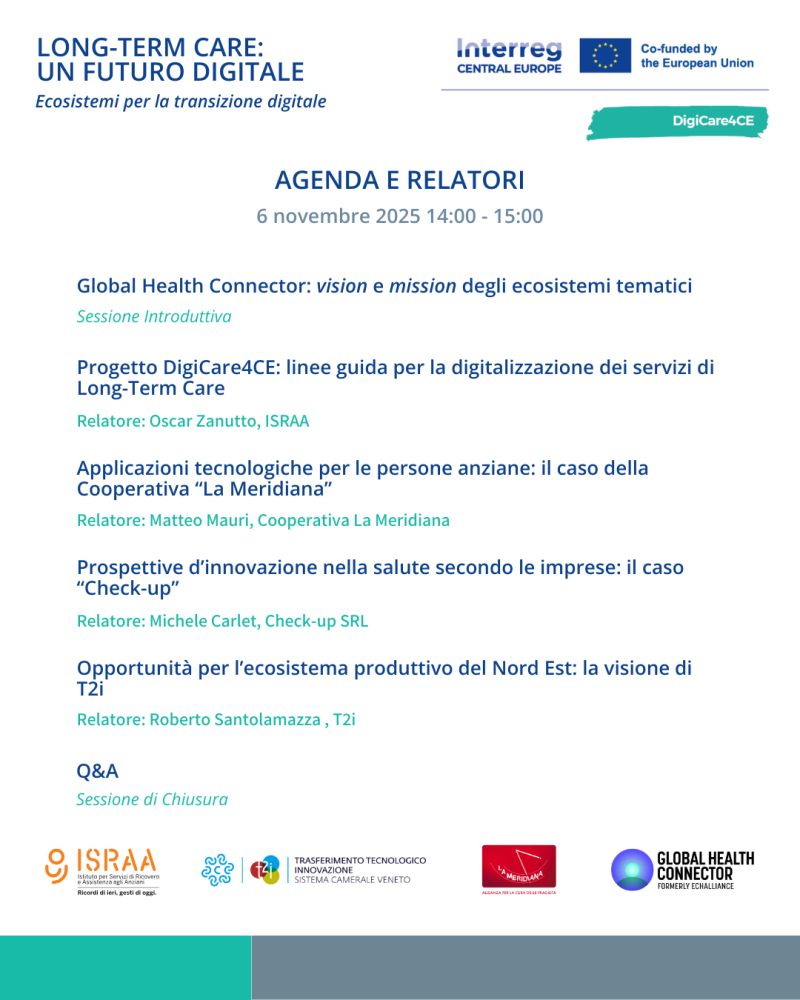 30 Ottobre 2025Webinar – Long-Term Care: un futuro digitale. Ecosistemi per la transizione digitale (6 novembre)